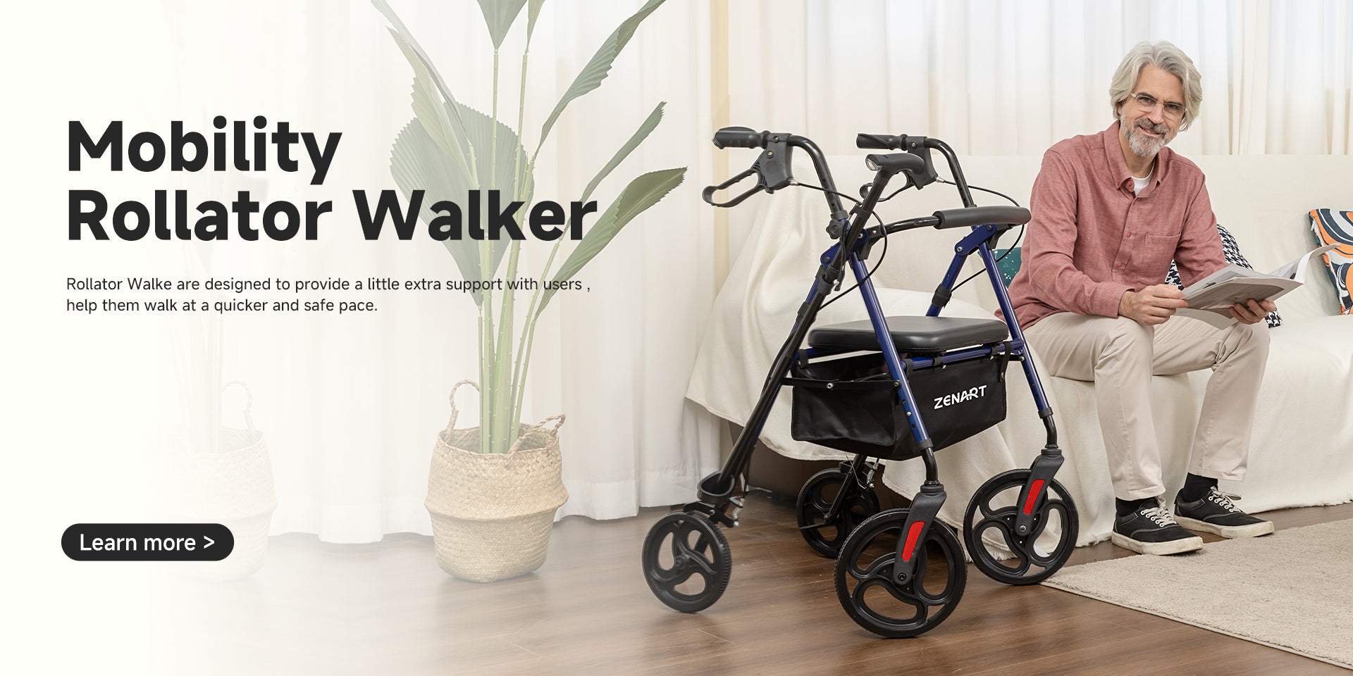 ZENART Mobility Rollator Walker for Seniors Adult with Adjustable Seat and 10" Wheels