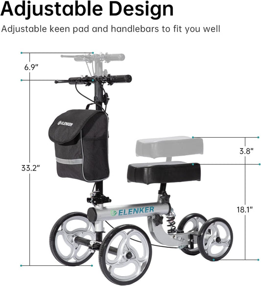 ELENKER Knee Scooter Steerable Deluxe Medical Knee Walkerfor Foot Injury Crutch Alternative